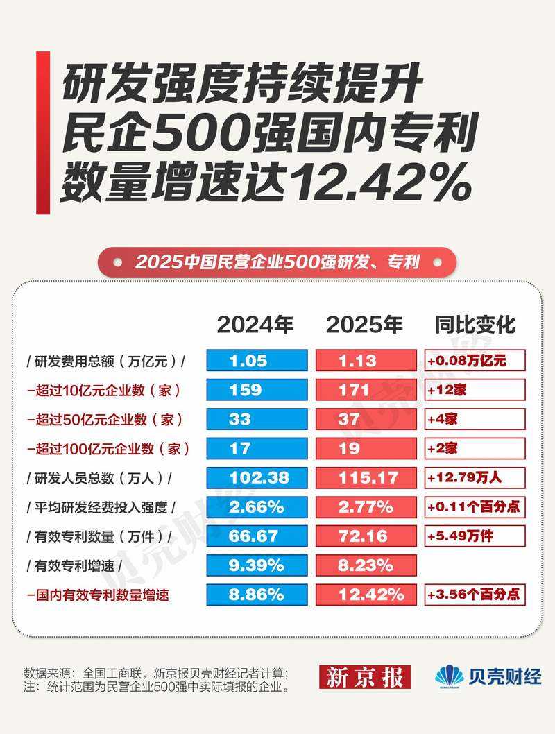 2025年“中国民营企业500强”呈现哪些特点?企业规模较上年有何变化?新京报贝壳财经记者梳理近两年“中国民营企业500强”,挖掘民营企业如何“量质齐升”,向高质量发展转型,揭示了民营企业发展的新趋势。