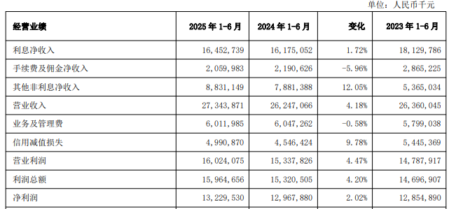非利息收入方面,2025年上半年,上海银行手续费及佣金净收入20.6亿元,同比减少5.96%。其中,代理业务收入同比增长8.69%,主要是财富管理规模增长驱动收入增长;信用承诺、托管、银行卡、顾问和咨询费等业务收入同比下降,主要受结构转型、减费让利、费率下调等综合因素影响。