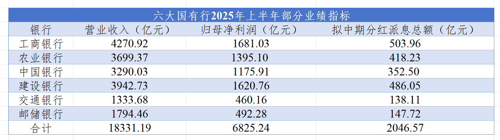 国有六大行2025上半年业绩出炉,分红计划超2000亿