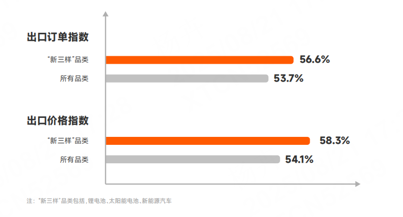 从出口产品来看,以锂电池、新能源汽车、太阳能电池为代表的“新三样”出口表现亮眼,出口订单指数、价格指数明显高于大盘,尤其是锂电池、新能源汽车量价齐升,出口区域呈现多元化趋势。东南亚已成为“新三样”重要出口区域之一;欧洲对节能减碳的政策导向,也持续激发“新三样”相关市场需求;拉美和非洲的基建需求为“新三样”产品出口提供了较大市场潜力。