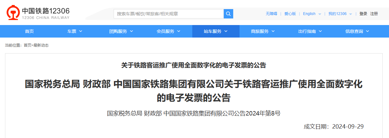 根据铁路部门规定,自2024年11月1日起,我国铁路客运领域推广使用全面数字化的电子发票,以方便旅客和单位报销铁路客票,让报销流程更加便捷高效。