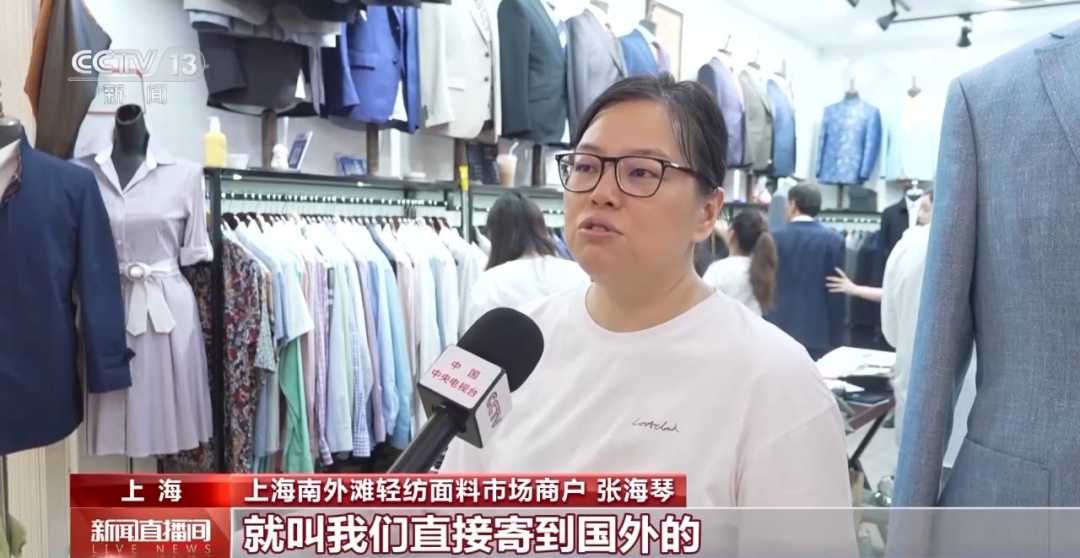 上海南外滩轻纺面料市场商户张海琴:外国人的回头客,因为我们都有联系方式,他们就会一直在加购,人不来了,就叫我们直接寄到国外。