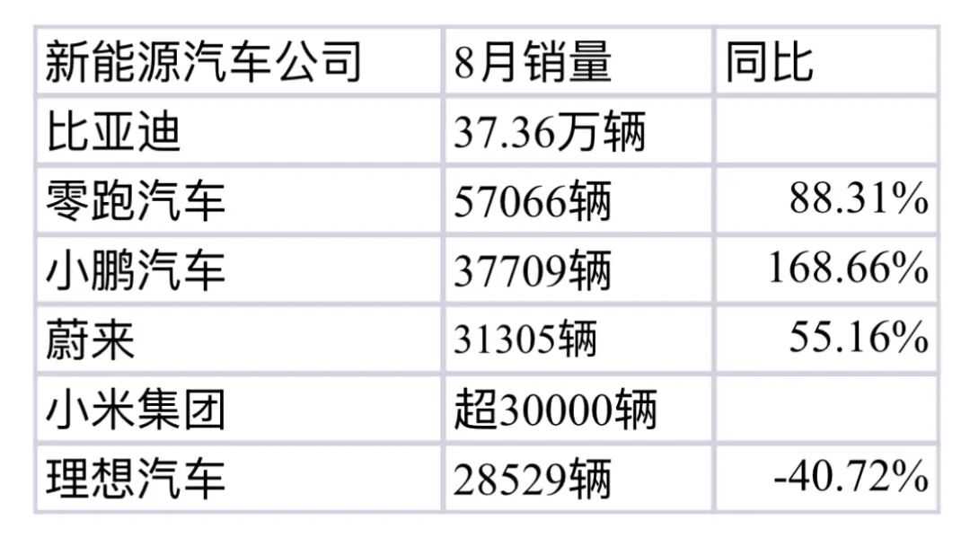 开学首日,中国新能源汽车上市公司纷纷交出最新“成绩单”,新能源车市场呈现强劲增长态势。9月1日,比亚迪以及在港交所上市的蔚来、小鹏汽车、理想汽车、零跑汽车等公司披露2025年8月的新车销售数据。最新数据显示,比亚迪8月新能源汽车销量37.36万辆,与上年同期持平。蔚来单月交付创公司历史新高。小鹏汽车、理想汽车、零跑汽车等公司也呈现不同程度的增长。另外,小米集团新车交付量持续多月超过3万辆。
