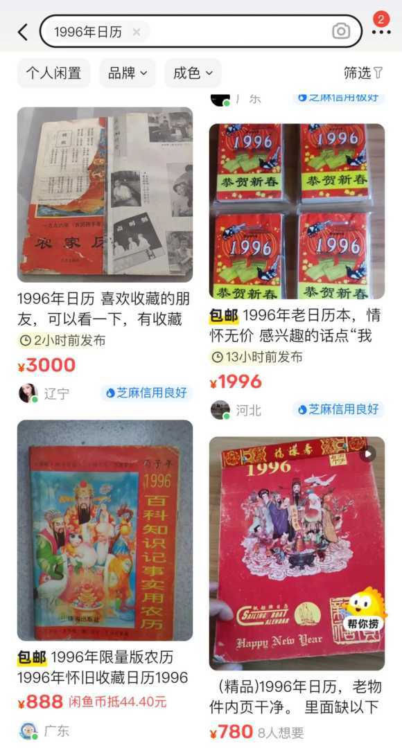 1996年日历二手市场热销,旧物件消费热潮兴起