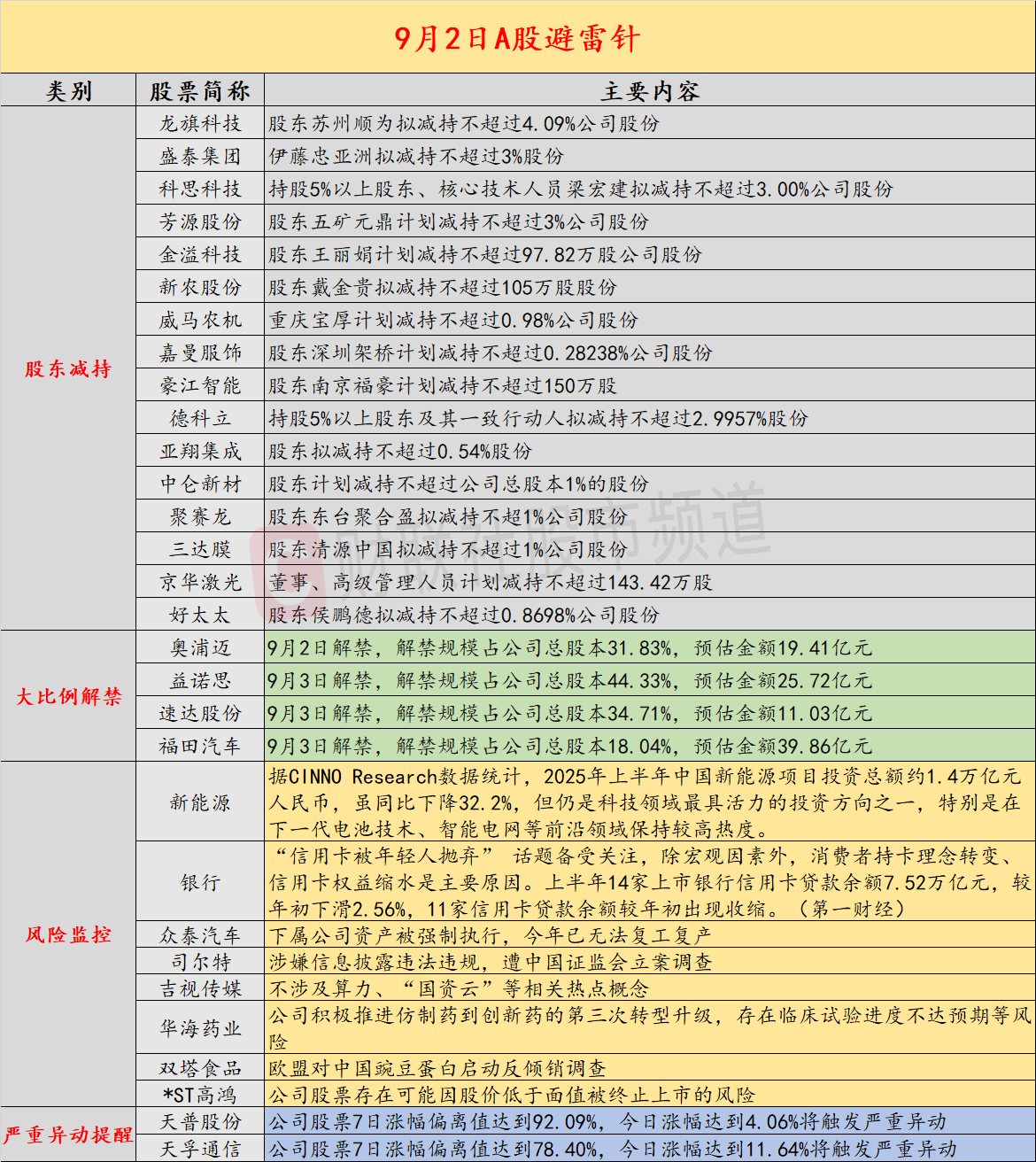 9月2日投资避雷针:新能源投资降温,信用卡市场收缩,海外风险频发