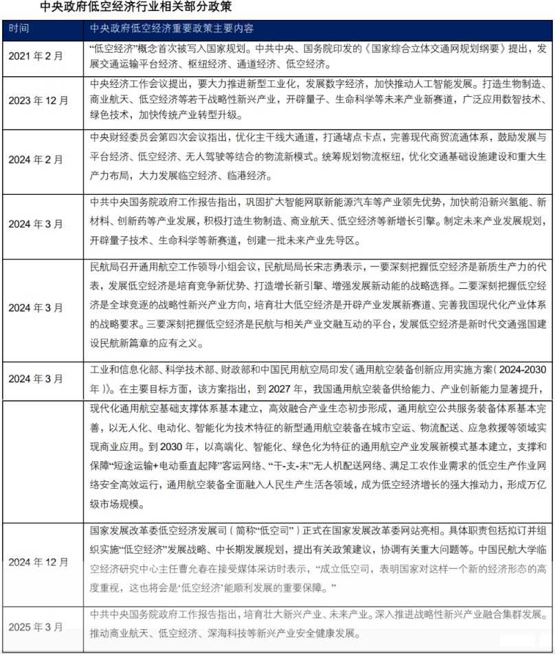 驱动因素涉及五方协同:中央层面2021年将其入国家规划,2024年设低空经济发展司,2025年写入政府工作报告;地方2025年政策升级,如深圳目标2025年120米以下适飞区占比超75%;军方通过三阶段改革放开空域,2023年规范空域分类;民航局推进适航认证,亿航获全球首张民用无人驾驶载人航空器运营合格证;企业积极布局,2023年无人机通航企业达19825家,小鹏、江淮等跨界入局,新材料、固态电池等技术突破夯实基础。