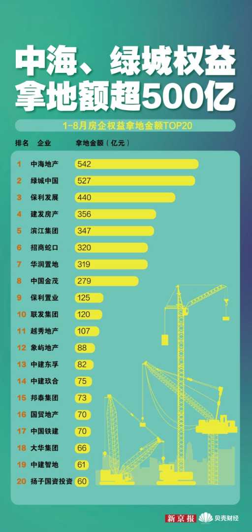 1-8月土地市场:央国企主导,聚焦核心城市与调规趋势