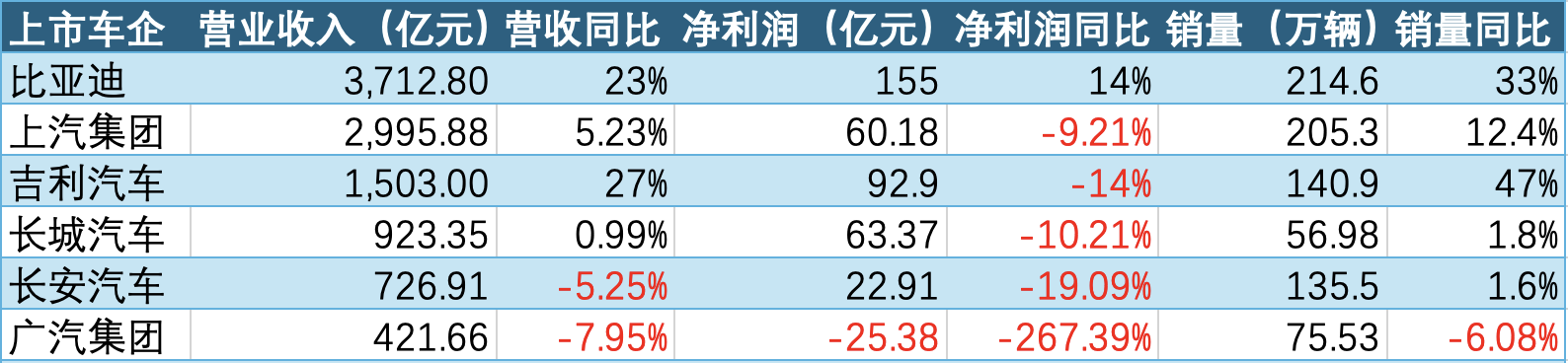 2025上半年上市车企业绩分化,比亚迪领跑,广汽转亏