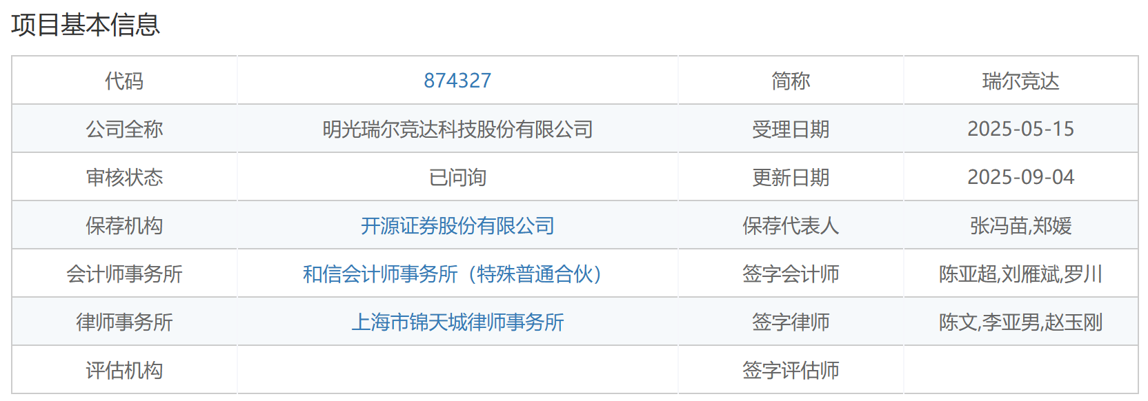 9月4日,据北交所官网,明光瑞尔竞达科技股份有限公司(下称“瑞尔竞达”)收到第二轮审核问询函,业绩可持续性、新增大额长期借款、外购成品销售情况等情况被监管层聚焦,其中业绩可持续性成为市场关注焦点。据悉,瑞尔竞达曾在2023年12月29日获得受理,保荐机构开源证券,2024年1月29日进入问询阶段,同年7月份公司完成第一轮问询,但2024年10月15日,公司向北交所提交了撤回申请,最终2024年11月8日北交所决定终止审核。