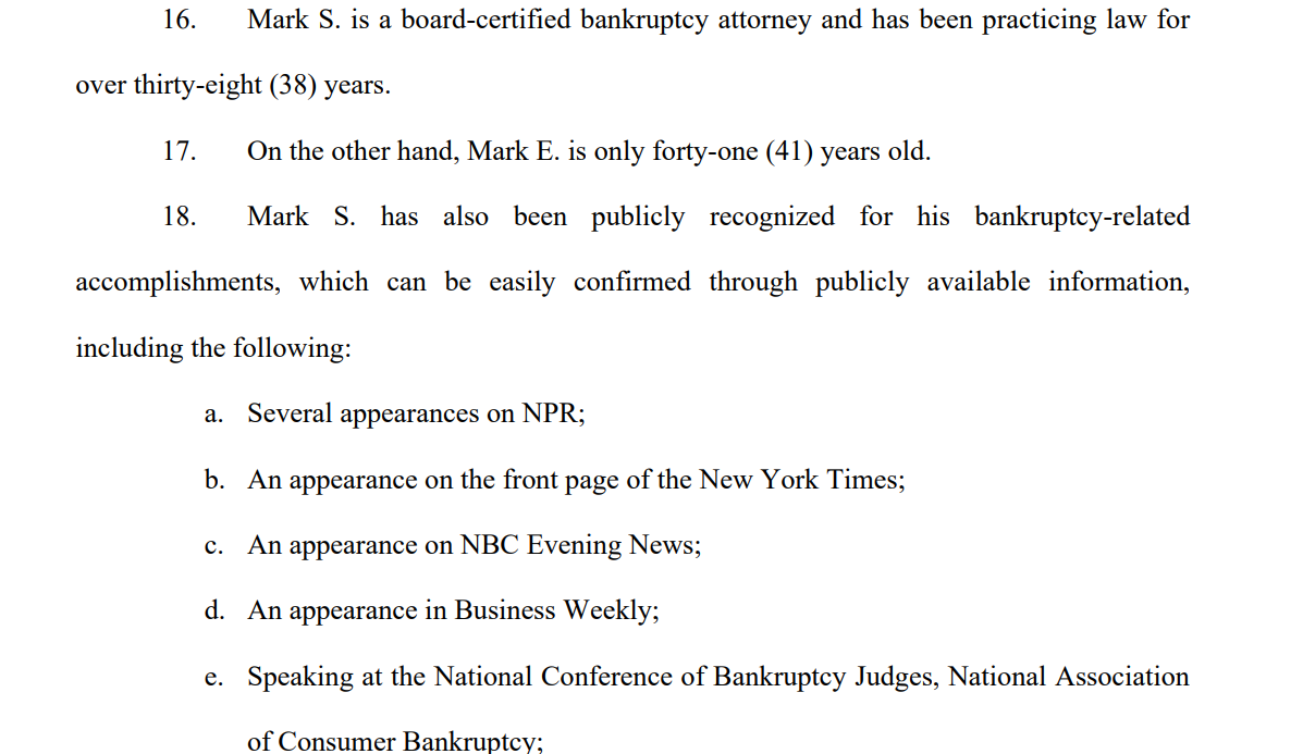 他在自己的网站上写道:“我对马克·扎克伯格没有恶意。我祝他一切顺利,但让我告诉你:我将主导‘马克·扎克伯格破产’这一搜索。如果他真的陷入财务困境,又恰好在印第安纳州,我将很乐意以我们同名之谊为荣来代理他的案件。”
