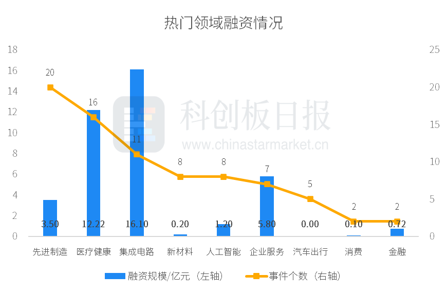 据财联社创投通数据显示,本周(8.30-9.5)国内统计口径内共发生84起投融资事件,较上周90起减少6.67%;已披露的融资总额合计约40.24亿元,较上周28.93亿元增加39.09%,投融资市场呈现稳健增长态势。从投资事件数量来看,本周先进制造、医疗健康、集成电路、新材料、人工智能等热门领域表现活跃,其中集成电路融资总额最多,约16.10亿元。