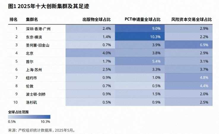 最近,世界知识产权组织(WIPO)发布《2025年全球创新指数》“世界百强创新集群”排行榜,粤港澳大湾区创新集群表现亮眼,“深圳-香港-广州创新集群”首次超越日本“东京-横滨集群”,跃居全球榜首,这一成就彰显大湾区创新实力。