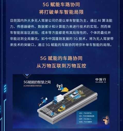 中智行选择的自动驾驶技术路线是车路协同,公司曾在早期的微信公众号文章中表示,自己是全球第一个采用从底层技术上深刻融合5G和AI(即5GAI)新一代无人驾驶技术路线的公司,通过5G赋能车路协同,弥补单车智能的局限。