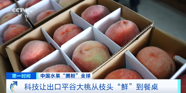 为了推动农食产品出口,今年以来,各地陆续开展支持农食产品出口三年专项行动,海关部门还为企业开通“鲜活绿色通道”,让水果保鲜“全流程提速”。北京海关所属平谷海关副关长靳凯:比如像第一次出口新加坡,只用4个小时,企业就完成了通关的流程,确保了大桃新鲜出口。