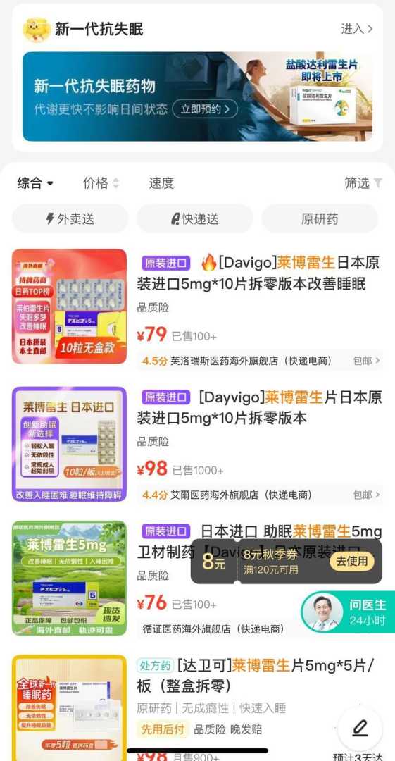 以莱博雷生为例,作为目前唯一可以通过线上平台购买的安眠药,其价格虽不算低,但美团提供的拆零服务极大提升了用药性价比。部分用户对安眠药只有短期需求,对他们而言,购买一整盒并不划算。美团针对这些用户,不仅提供拆零服务,还随药附赠小药盒和说明书,消费者可以用不超过100元的价格买到抗失眠创新药莱博雷生,这一举措深受用户好评。