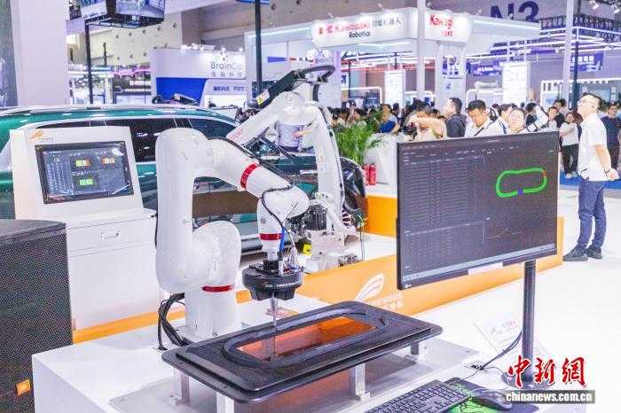 记者移步智能机器人展馆看到,一台机器人正给一大块汽车玻璃进行涂胶检测,旁边一台工业相机“目不转睛”地盯着机器人,相机后面监控屏幕上同步呈现着机器人涂胶检测画面……这一充满科技感的生产场景,是中科摇橹船“3D涂胶质量在线检测系统”的作业场景。搭载该系统的涂胶检测机器人,可以实现秒级响应,精确检测胶条厚薄、漏胶、胶线过窄或过宽等问题。