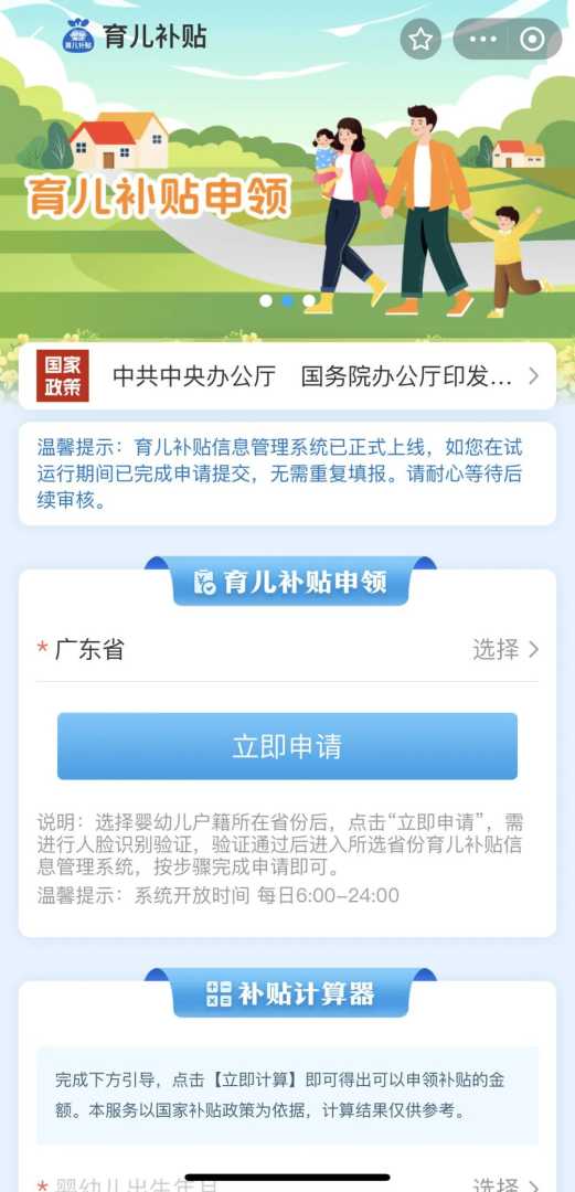 此外,微信“育儿补贴”小程序目前也已经上线,页面显示,选择申领省份后,将跳转到省政务服务平台,选择育儿补贴专区进行申领。这一举措进一步方便了家长,提高了申领效率。