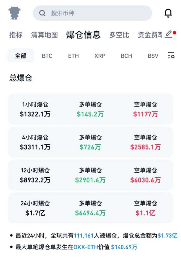 日前比特币、以太坊等虚拟货币价格突然下跌。截至9月8日18:08,以太坊价格略有回升,报4328美元,24小时以来上涨0.69%。Coinglass数据显示,过去24小时加密货币市场共有超11万人被爆仓,爆仓总金额为1.73亿美元。