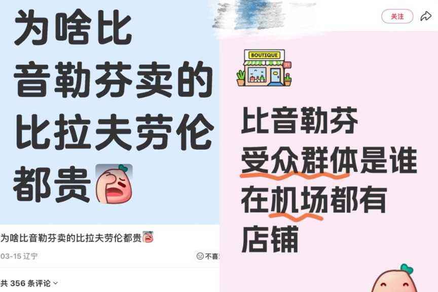 在小红书等社交平台上搜索比音勒芬,会发现有不少网友参与“比音勒芬比拉夫劳伦都贵?”“满机场的比音勒芬受众是谁?”等帖子的讨论,品牌定位似乎模糊不清。