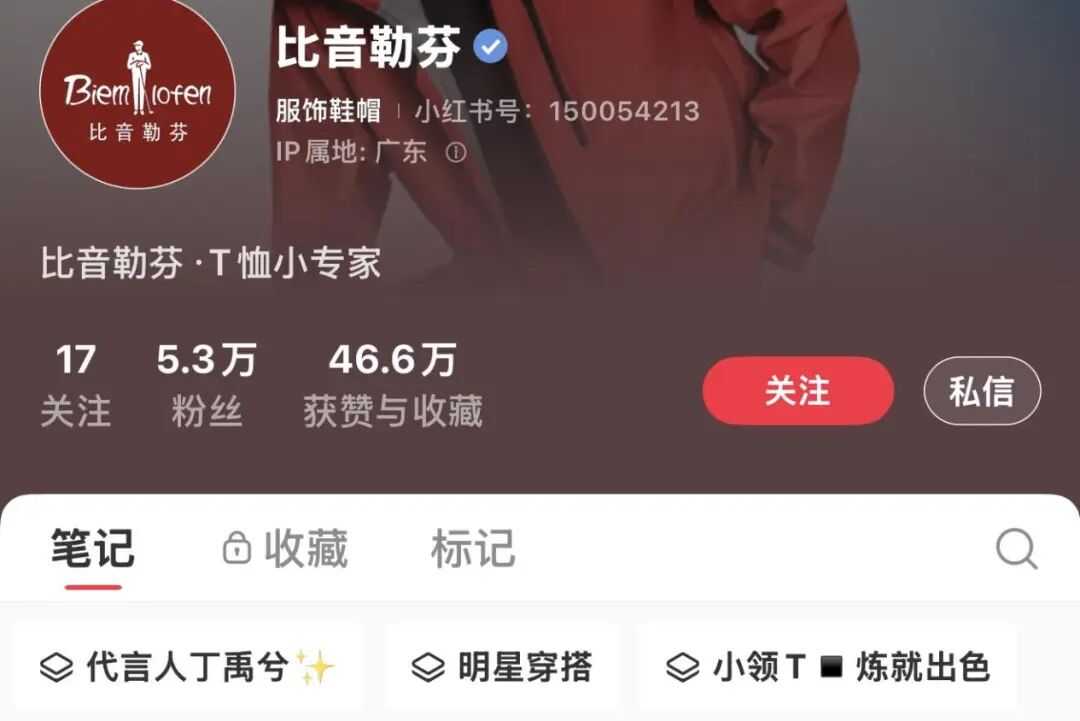 在天猫官方旗舰店页面,赫然出现在屏幕上的标签是“中国高尔夫球队合作伙伴”。但在小红书的比音勒芬官方账号上,品牌自称为“T恤小专家”。一位来自上海的消费者直言,若非对这个品牌有所了解,仅从其在小红书上的宣传页面来看,几乎难以将其与高尔夫运动联系起来,其宣传也更偏重普通的户外装备。