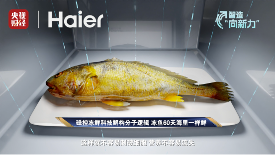 针对欧洲用户喜爱生食、注重肉类口感,海尔冰箱也推出了原创磁控全空间保鲜科技,把磁场应用到食材保鲜上,打造保鲜新体验。普通的冰箱,长时间冷冻会严重影响肉类口感,而反复解冻的牛排,会让冰晶刺破细胞,导致汁液大量渗出,让肉类口感干柴。而磁控全空间保鲜冰箱,用磁场让细胞里边的水分子重新排列,把冰晶做小,在冷冻的时候,细胞就不容易被刺破,营养流失少了,保鲜时间就变得更长,营养才不会流失。在磁控冻鲜区域,牛排、深海的鱼甚至可以存储60天依旧新鲜,展现科技魅力。