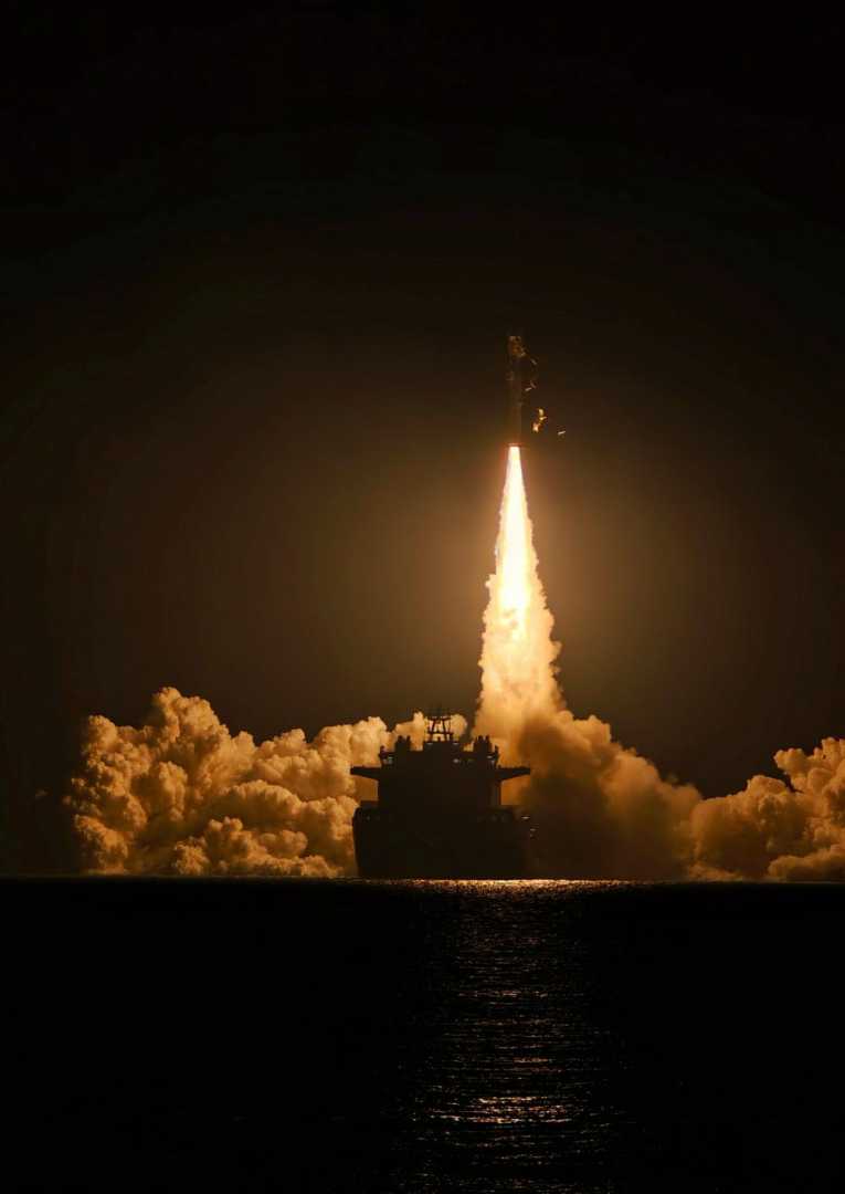 捷龙三号运载火箭在山东日照附近海域点火升空 白国龙摄