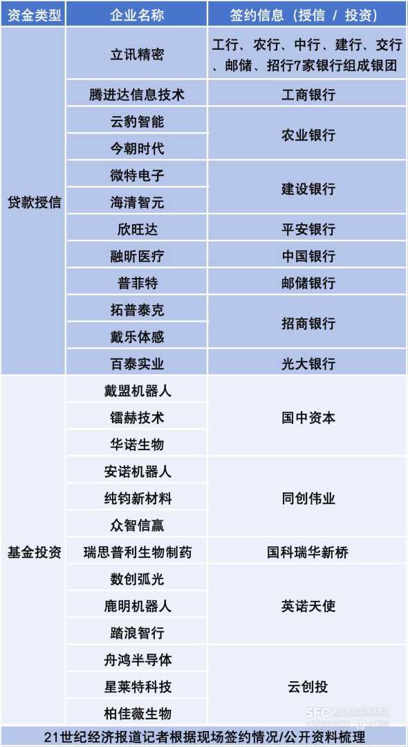 会上金融机构与企业签约情况(21世纪经济报道记者曹媛/整理制图)