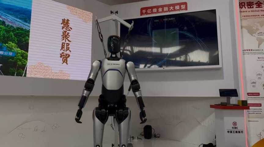 “这款人形机器人,目前已经在一些银行网点进行应用,它担任着‘大堂经理’的职责,可以简单对话,承担业务咨询等工作。”工作人员说道。