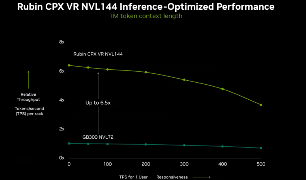 英伟达透露,搭载Rubin CPX的Rubin机架在处理大上下文窗口时的性能,能比当前旗舰机架GB300 NVL72高出最多6.5倍,这标志着AI服务器性能的重大突破。