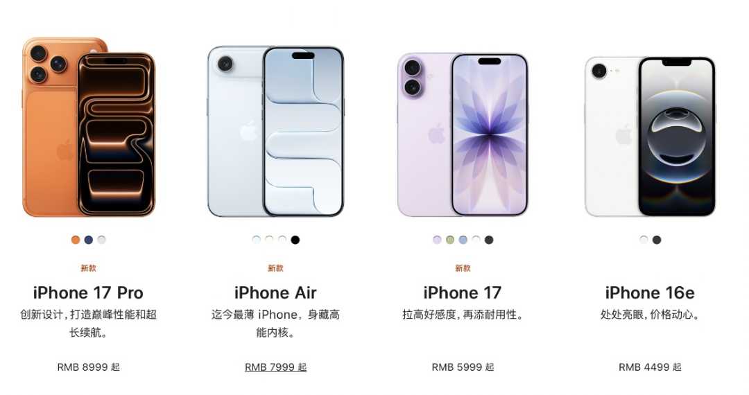 北京时间9月10日凌晨1点,在苹果2025秋季新品发布会上,iPhone 17、iPhone Air、iPhone 17 Pro等智能手机新品悉数亮相,引发消费电子领域广泛关注。其中,iPhone Air成为苹果推出的史上最薄手机,售价7999元起,轻薄设计与强劲性能成焦点。
