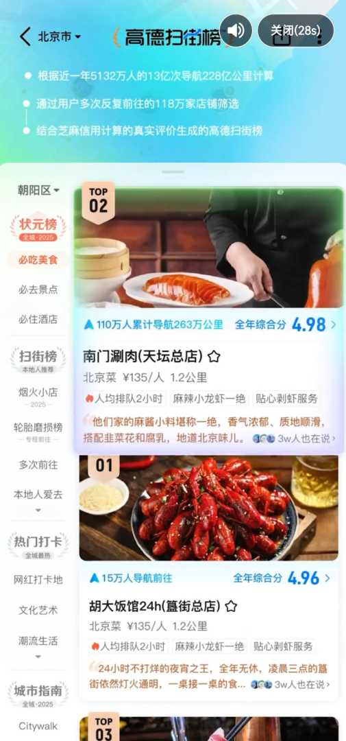 财联社记者最新发现,高德APP已正式上线创新功能“高德扫街榜”,该榜单与美团旗下大众点评榜单类似,对商家进行全方位综合评分与排名,覆盖美食、景点、酒店等丰富业态。作为智能出行领域的佼佼者,高德地图APP此次推出的榜单,是根据近一年5132万人的13亿次导航、228亿公里行程数据精心计算得出,通过用户多次反复光顾的118万家店铺筛选,并结合芝麻信用计算的真实评价生成,为用户提供更可靠的消费参考。高德地图这一创新举措,无疑将进一步提升用户体验。