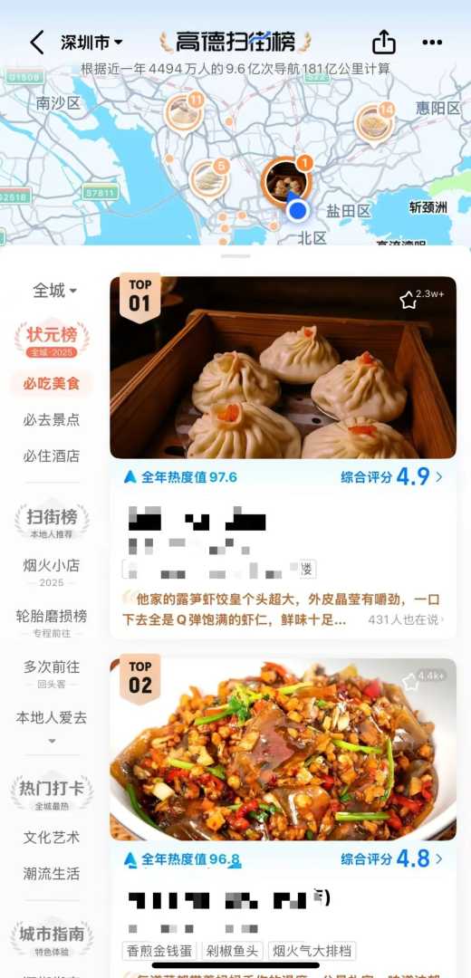 9月10日,高德地图推出全球首个基于用户行为的高德扫街榜,构建线下服务信用体系,并启动“烟火好店支持计划”,发放超10亿元补贴,鼓励用户到店消费,助力烟火小店成长。