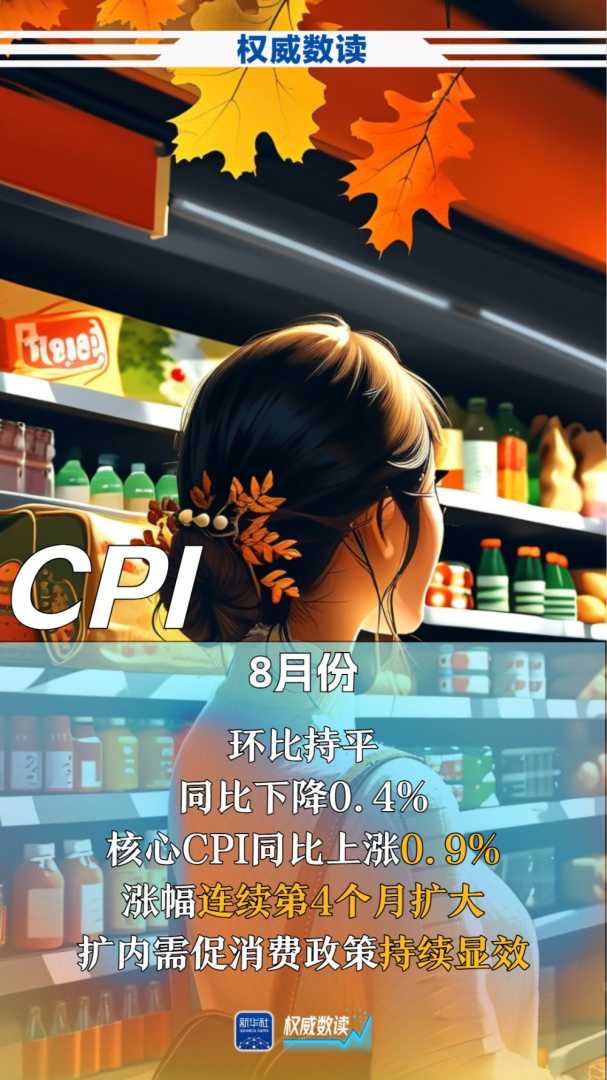 国家统计局发布8月CPI数据,显示消费市场运行总体平稳,CPI同比下降0.4%,核心CPI同比上涨0.9%,涨幅连续扩大,反映消费市场内在动力增强。