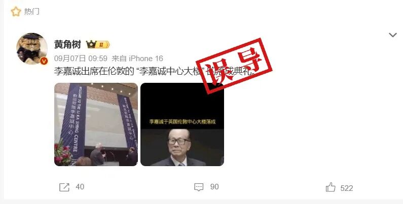另外,也无任何可靠消息表明李嘉诚近日出席伦敦"李嘉诚中心大楼"参加揭幕式。
