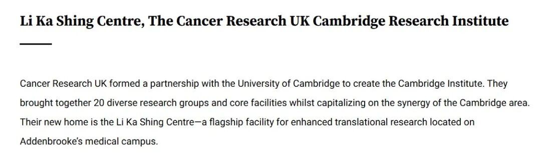 剑桥大学癌症研究所所在地为"李嘉诚中心"。