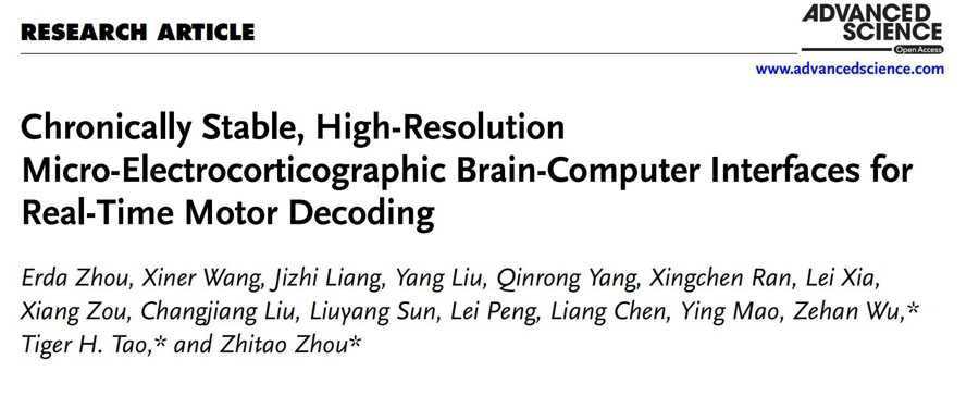 国际学术期刊《Advanced Science》发表了一项来自中国科学院上海微系统与信息技术研究所周志涛团队、脑虎科技陶虎团队、复旦大学附属华山医院毛颖/陈亮团队(下称“研究团队”)联合完成的重大研究成果——一款具备广泛兼容性的通用型植入式柔性脑机接口系统。