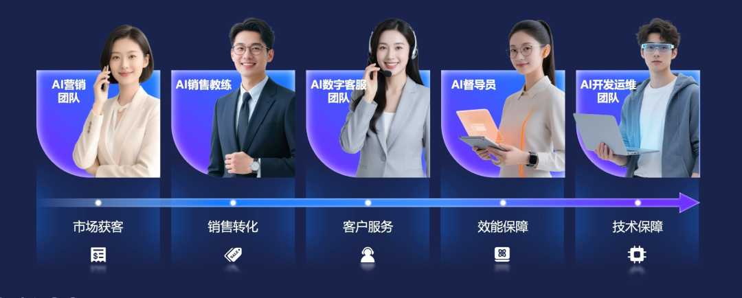 据介绍,这些AI数字员工具备清晰的角色定位与目标,能够作为责任主体融入现有组织。其中,“AI数字客服团队”提供7×24小时的客户服务支持,让每次客户互动都成为挖掘增长机会;“AI营销团队”能精准捕捉并转化商机,执行高效的销售策略,为营收增长负责;“AI销售教练”能培训员工以提升销售技巧;“AI督导员”能以20倍人效完成巡检,提升门店的销售转化率;“AI开发运营团队”则可实现自动建站等需求。AI的深度应用,正在重塑企业运营模式。