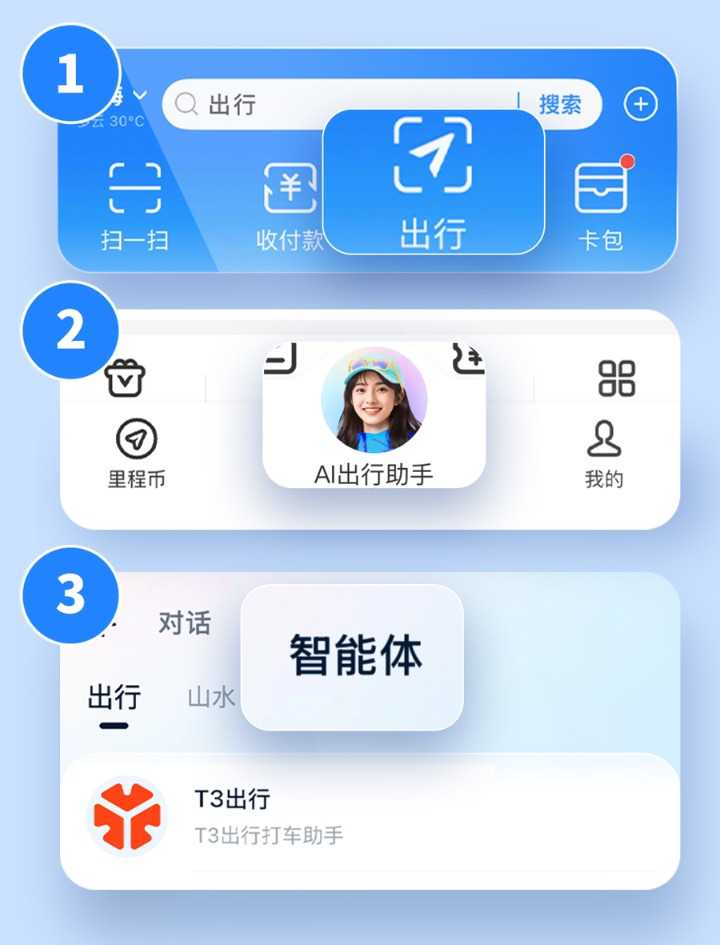 2025年上海外滩大会上,观众通过AI语音叫车成功抵达目的地,展示了T3出行与支付宝合作的智慧出行新体验。AI技术不仅提升打车效率,还在调度、客服、安全等方面实现全面升级。