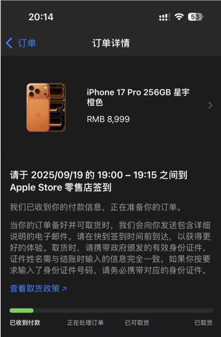 也有网友向澎湃新闻记者展示了在20时05分抢到于19日到店取货的iPhone 17 Pro版本,并表示感觉今年比之前好抢,智能手机市场迎来新动态。