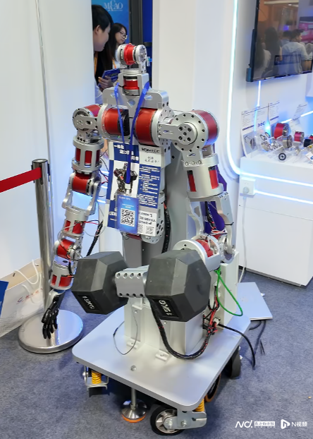 在现场,运得动力市场总监黄一秋展示了具身智能机器人一体化关节模组。新产品单臂抓举重量达20kg。据介绍,这款机器人拥有超过15公斤的抓举能力和50公斤的抱举能力,已经能够完全替代人在工厂中的部分劳动。它能够完成重复不间断的重体力工作,比如抓举和搬运重物,并且其搭载的永磁刹车技术在站立状态下不耗电,有效避免了因过热导致的机器人摔倒问题。该机器人主要应用场景为工业领域,尤其是那些需要进行重物搬运和抓举的工作,例如在工厂生产线中替代人工完成繁重的搬运任务。
