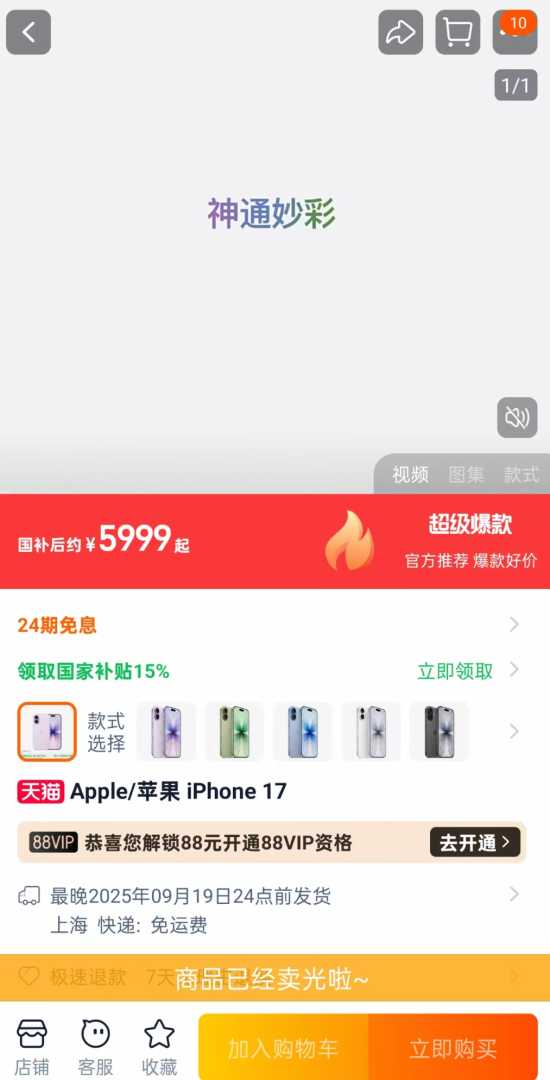 另外,广州一授权经销商店中,iPhone17的线上预购额度也瞬间告罄。店员告诉时代财经,这种情况下只能等下一波购买,具体时间得在19号发售后,视到货情况而定。