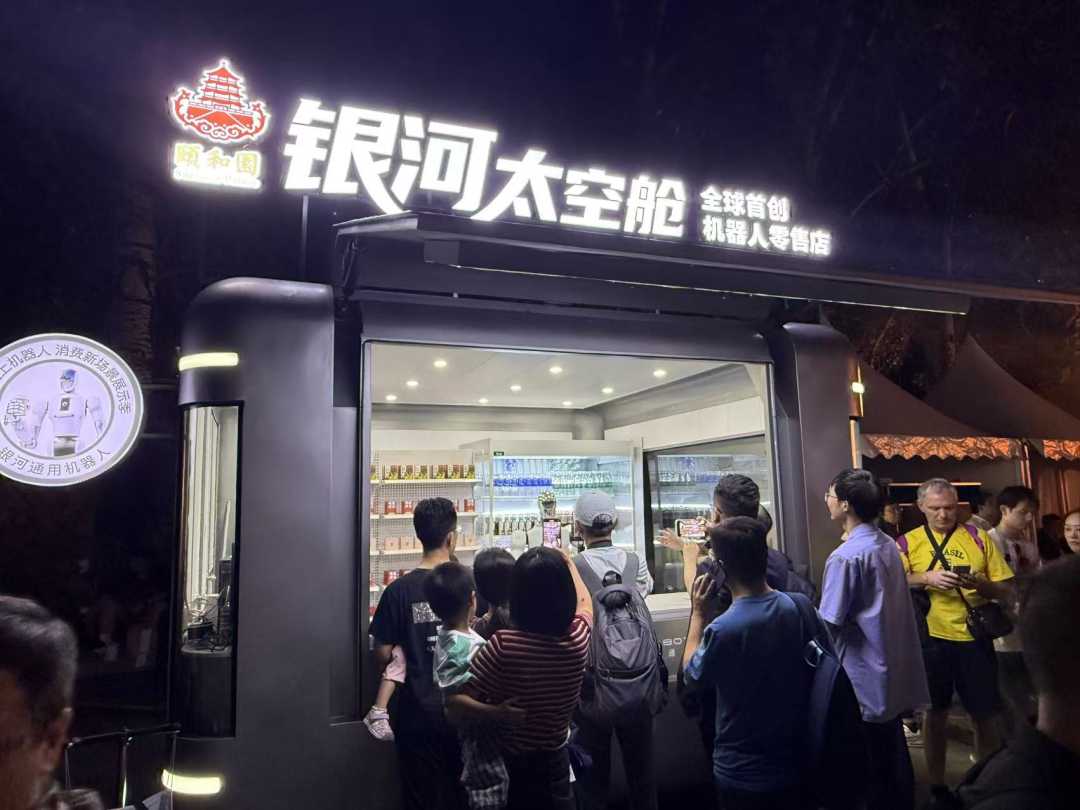 当晚的颐和园,银河通用太空舱前人潮涌动。记者注意到,除了许多热衷尝试体验的年轻人,还有一些老年人在门口好奇地徘徊。其中,一位老年人与记者闲聊时说,“社会进步太快了,机器人卖货这么先进的东西,自己很担心用不明白,不会下单、不敢去尝试。”