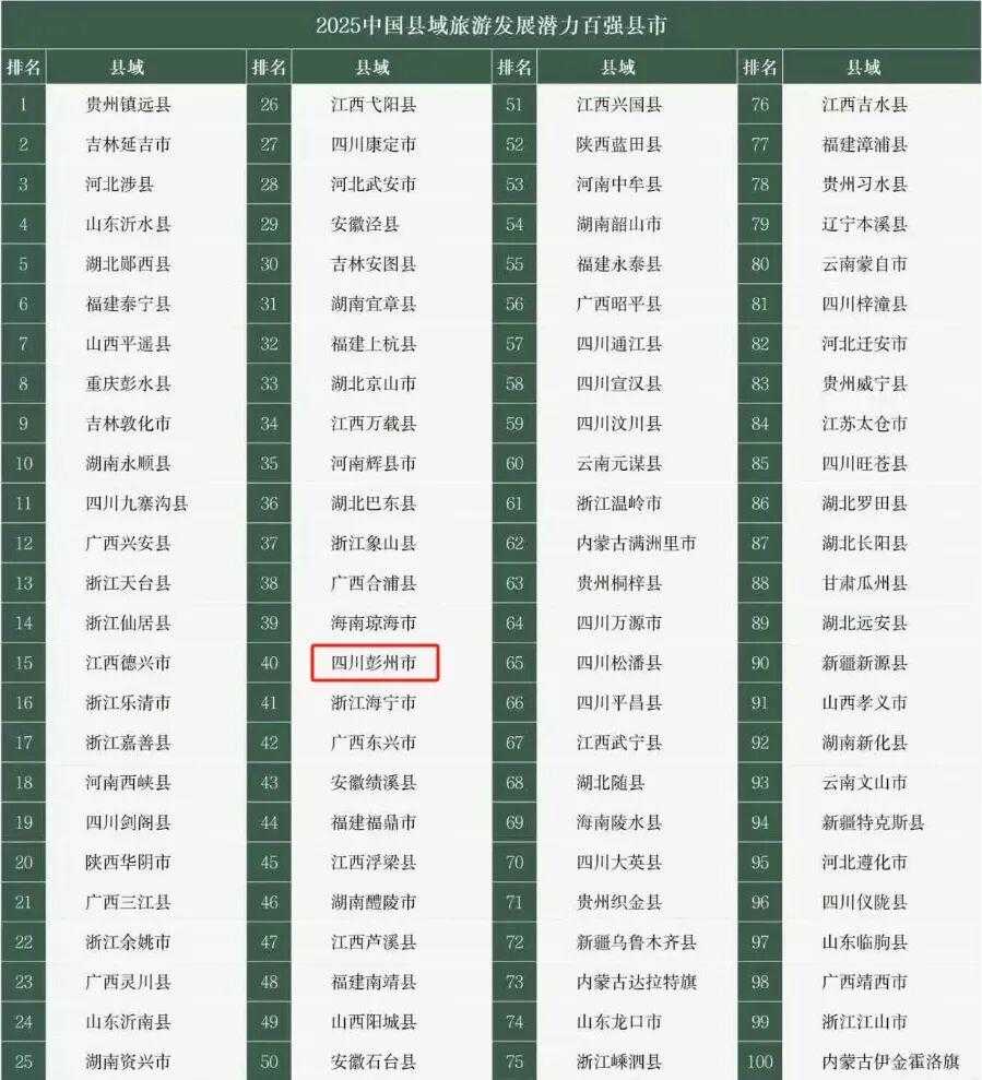 2025中国县域旅游竞争力揭晓,成都11地上榜彰显实力