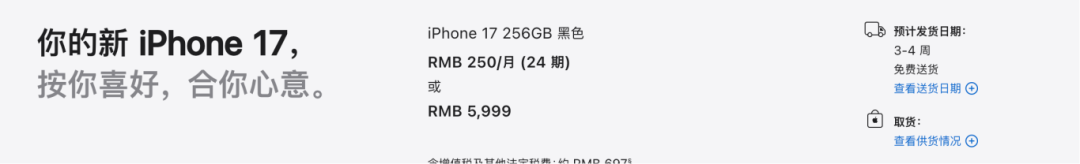 目前,苹果官网显示,iPhone 17 预计发货日期在3—4周,淘宝苹果官方旗舰店显示,预计将在38日内发货,消费者需耐心等待。苹果新品的市场表现,无疑成为了当前消费市场的热门话题。