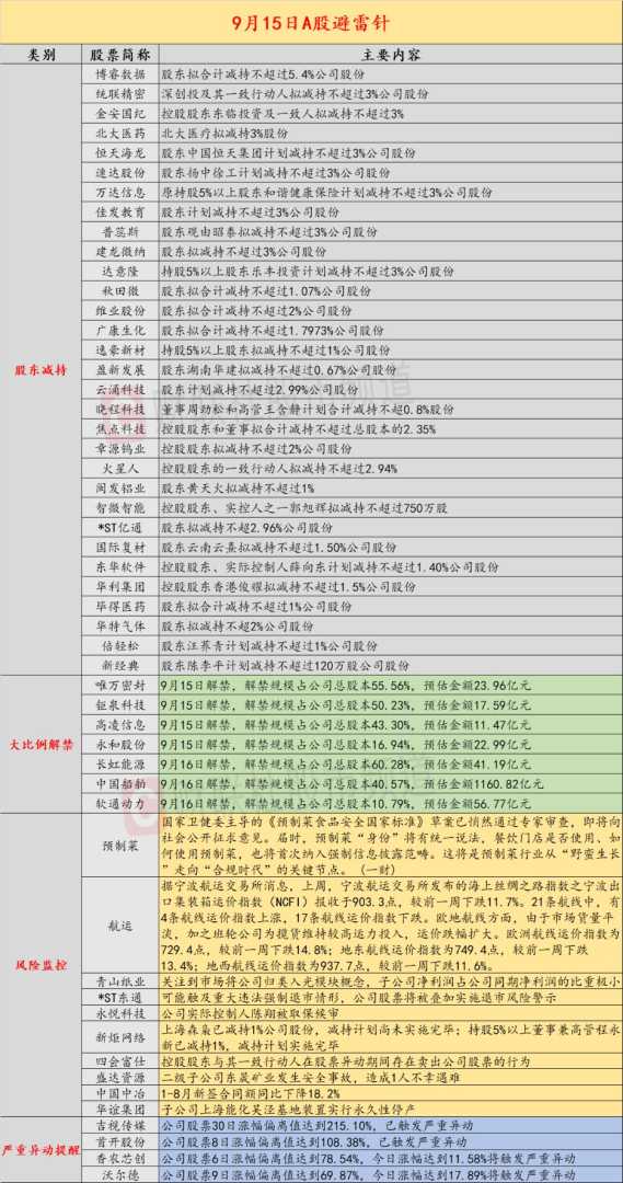 3、博睿数据至佳发教育等34家公司:股东拟合计减持不超过5.4%至0.67%公司股份,涉及深创投、和谐健康保险等多家机构,减持潮反映市场资金流动性变化(减持预警、股东减持)。