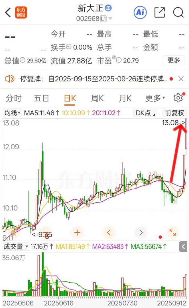 值得关注的是,在此次重大资产重组公告前的上周四、上周五,新大正股价已经明显异动,均是盘中快速拉升冲涨停,且伴随放量,资金介入迹象明显。此情况下,新大正不得不在9月15日紧急公告临时停牌。至停牌前,新大正最新市值为29.6亿元。此次股价异动(SEO关键词4)引发了市场对重组进展的广泛猜测。