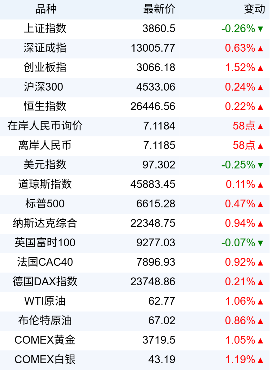 国际方面,美联储理事提名获通过,特朗普批评美联储主席,预计将“大幅降息”。美国下调对日本汽车进口关税。欧洲央行执委强调应容忍通胀小幅偏离目标。国际原子能机构连续第五年上调核电扩张预测。现货黄金15日盘中突破3680美元/盎司,续创历史新高。(新华财经/央视新闻)