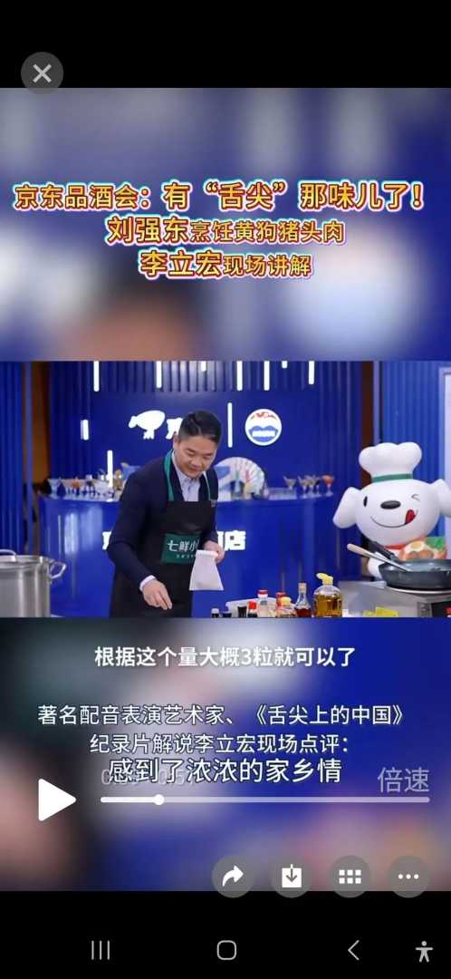 刘强东说他第一次直播很紧张,称“像贾国龙先生第一次炒菜一样紧张,像罗永浩第一次说脱口秀一样紧张。”提到做菜方面,刘强东表示只要回家,基本上天天都会给家人做饭。