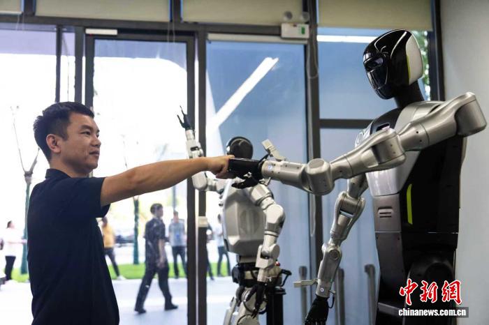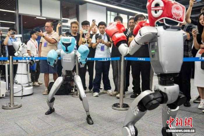 近日,2025互联网岳麓大会上,拳击机器人正在秀技能。中新网记者唐小晴摄