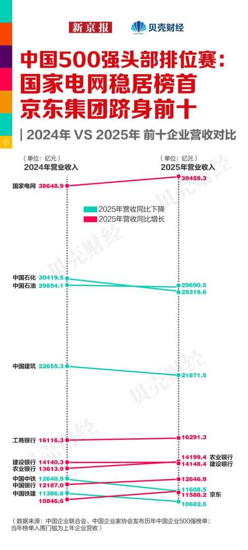 2025中国企业500强榜单:京东入前十,万亿阵营扩至15家